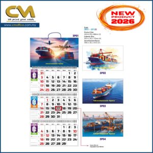 Product Range Code : 3P01 – 3P12S (Ready Made + Hot Stamping) Calendar Size : 800mm(H) x 345mm(W) ** Custom Made Design available